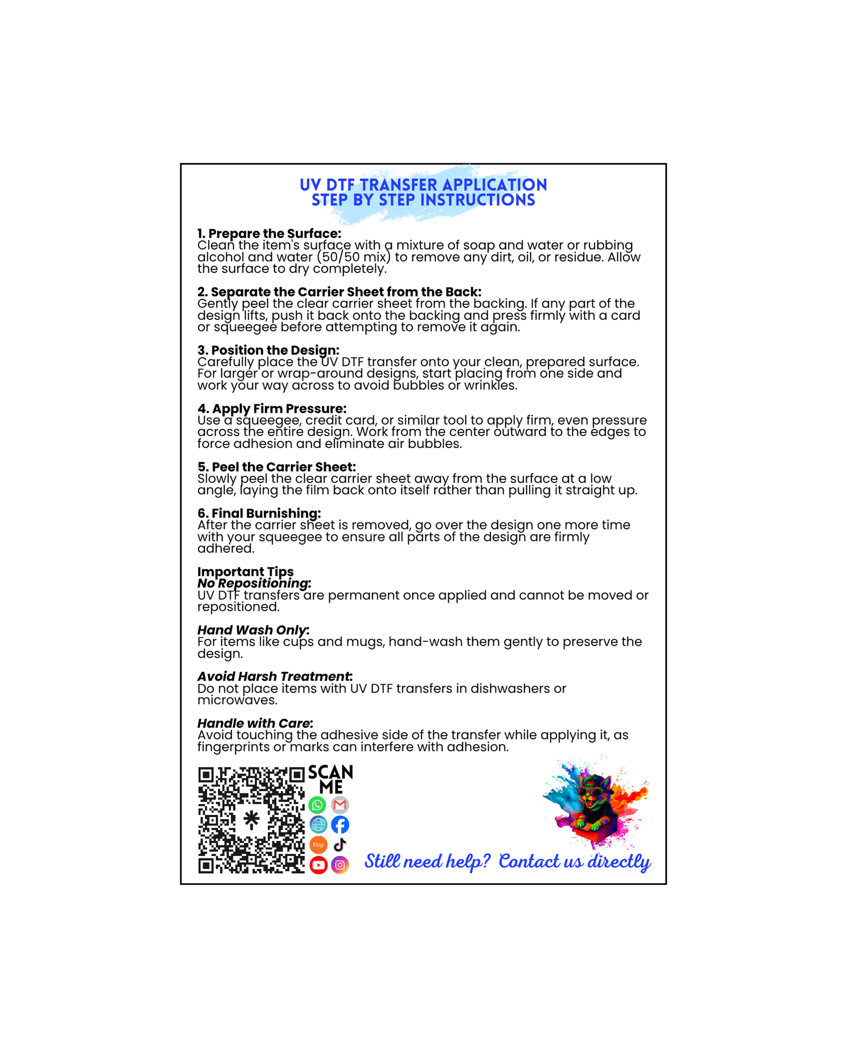 - Slowly lift the transfer film away, leaving the design firmly attached.