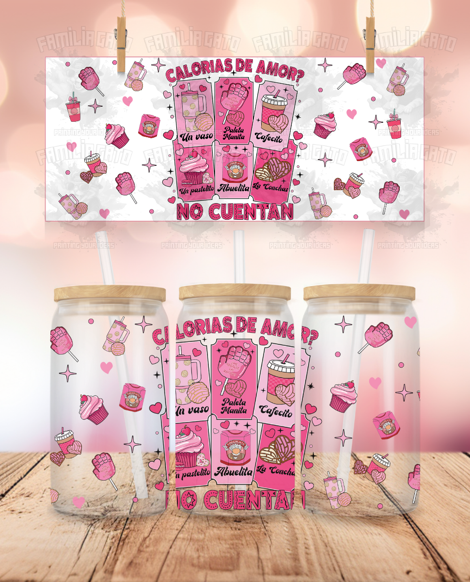 Latino Valentine's Day - Calorias de Amor No Cuentan #1 UVDTF Sticker Wrap For 16 oz Libbey Glass Cup